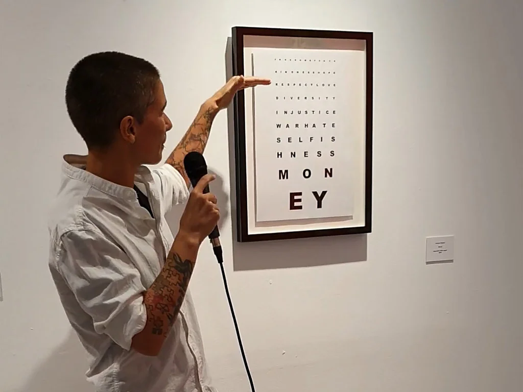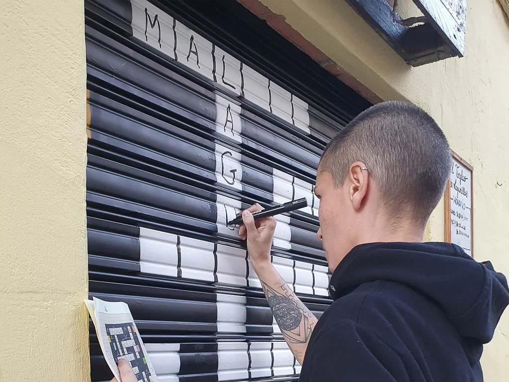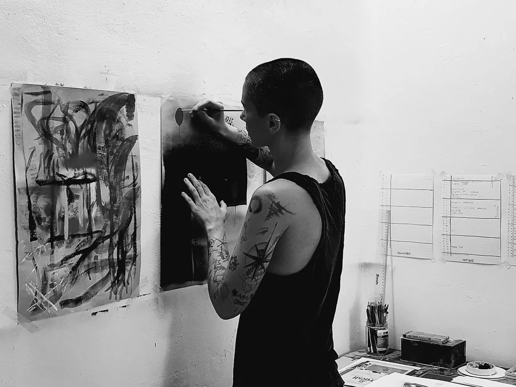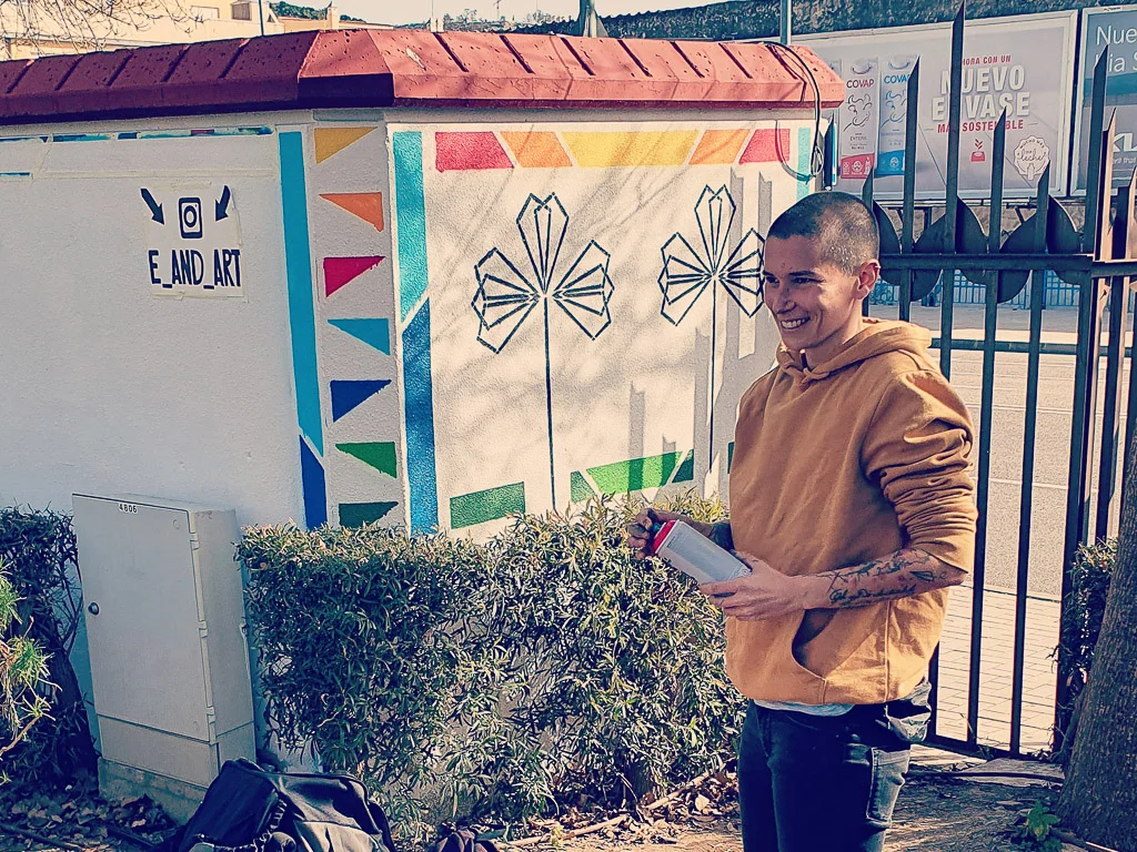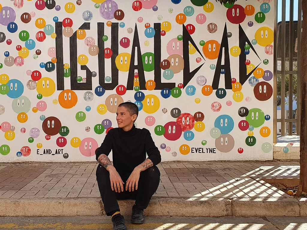 Evelyne Rigaud, nacida en Bordeaux (Francia, 1990), comienza su carrera artística en tiempos de post-pandemia cuando siente que necesita replantearse la manera en que se expresa con el medio y conecta con las personas. Trotamundos, asertiva y ecléctica, Evelyne vive el arte como una forma de conocimiento cultural y de nexo humano mediante la teatralidad performántica o la improvisación sobre el lienzo. La historia, los idiomas y las relaciones personales subyacen bajo su visión artística caleidoscópica, política y antropológica, donde las conexiones humanas -y los distintos medios para apelar a ellas- verbalizan y nutren su puesta en escena geométrica, de formas simples y colores vivos enfocada hacia los diseños poderosos y eficientes.